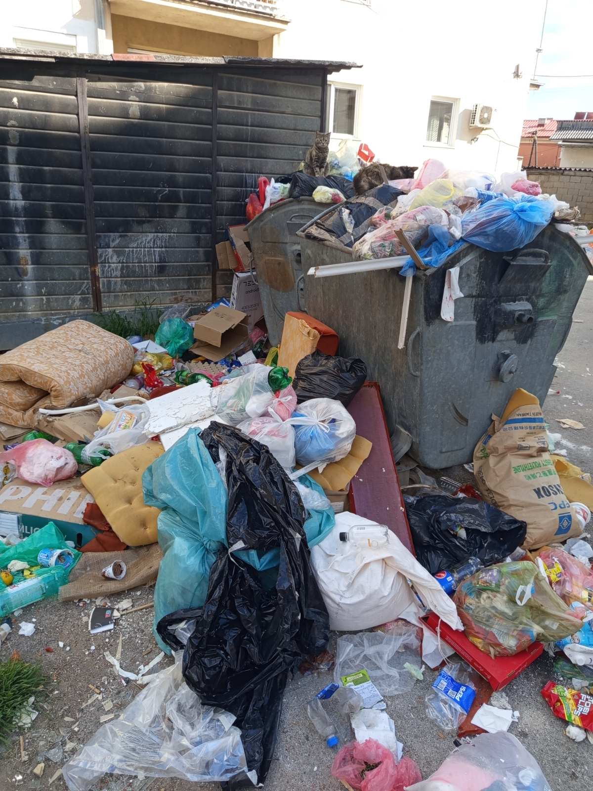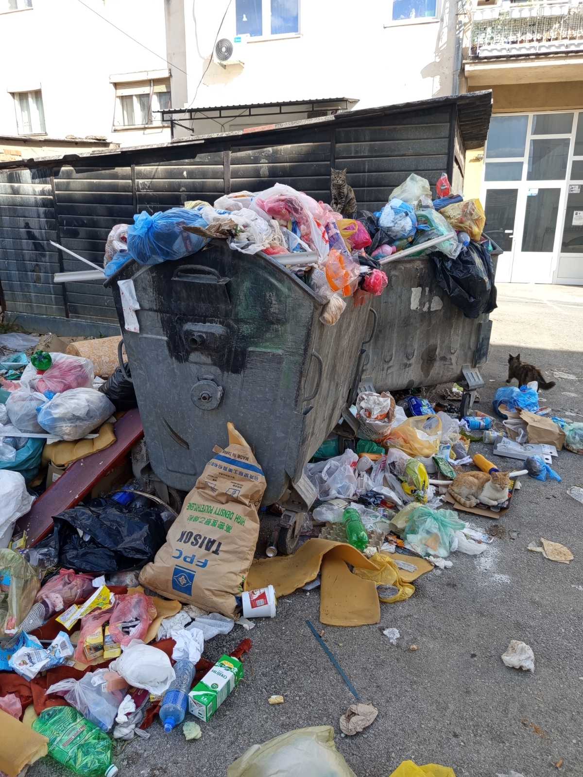 Локација ул. “Кузман Шапкарев” или ул. “Козара” по старо кај зградите. Две недели неисчистен отпад, а сметки си стасуваат и граѓаните си плаќаат.