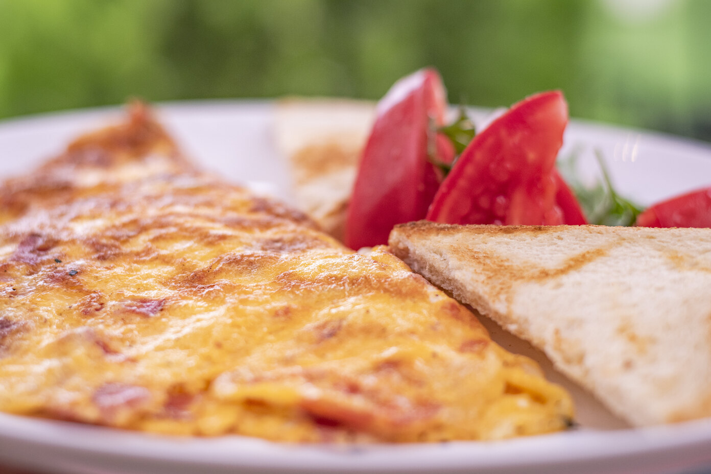 -Омлет со три јајца – класика која никогаш не старее, со можност да изберете варијанта со шунка, сирење или зеленчук.