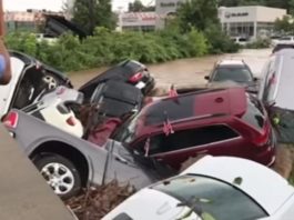 НЕВЕРОЈАТНИ СЦЕНИ! Поплава ги однела сите џипови од салон за автомобили, штетата милионска (ВИДЕО)