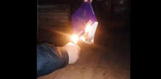 Татко пред своите деца запали детски библии кои црквата ги делеше...