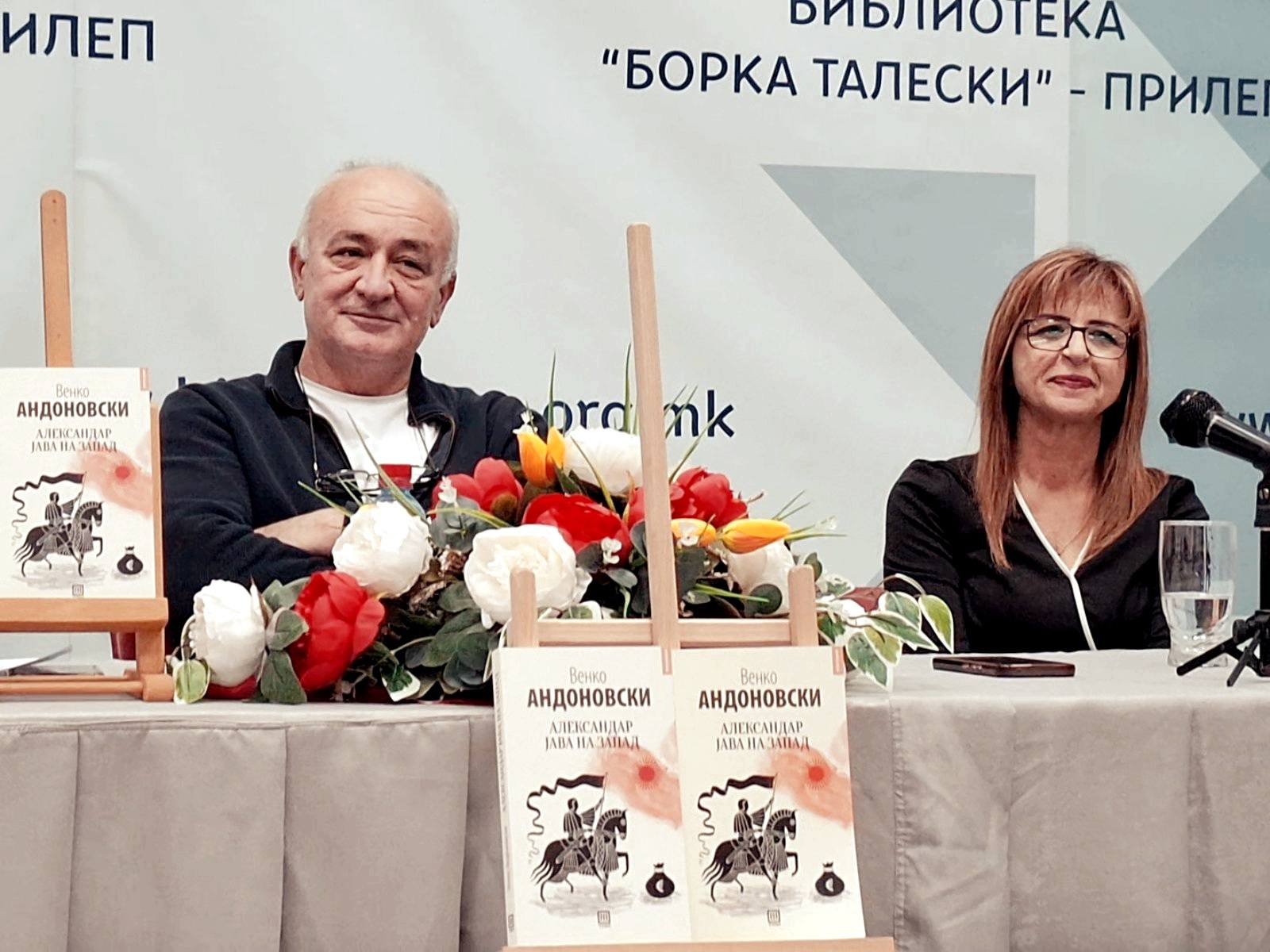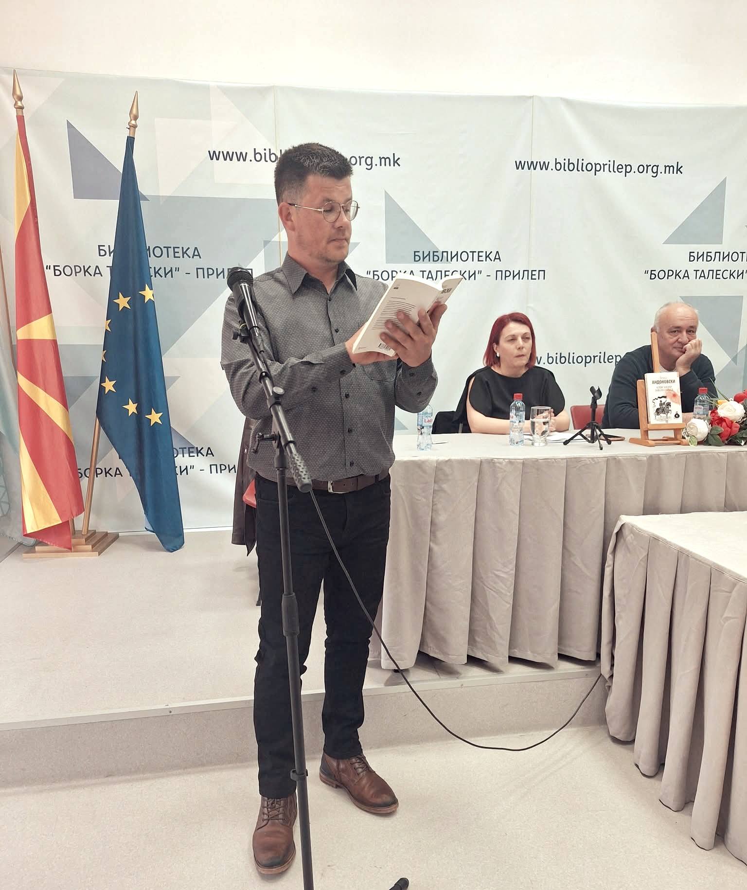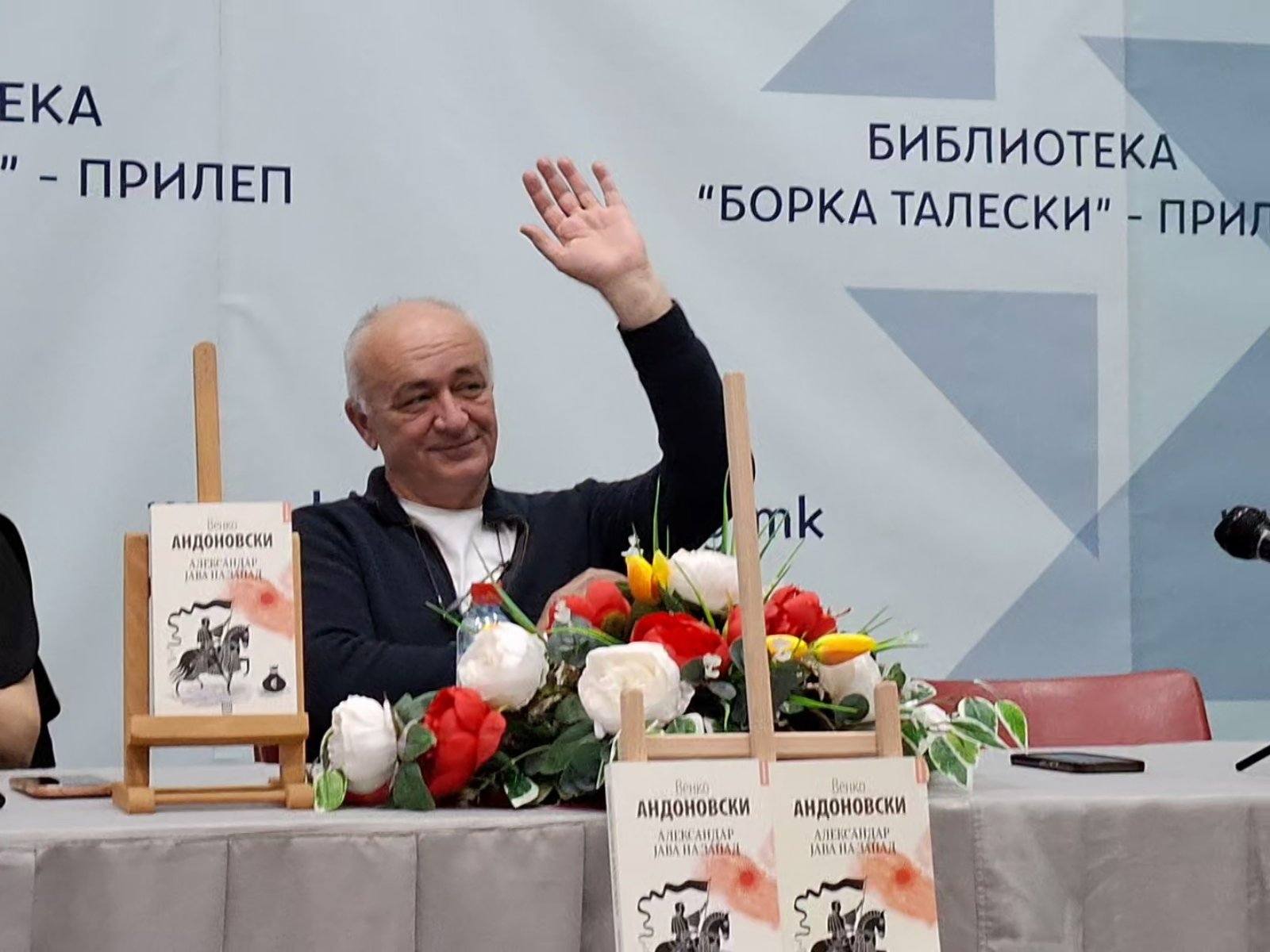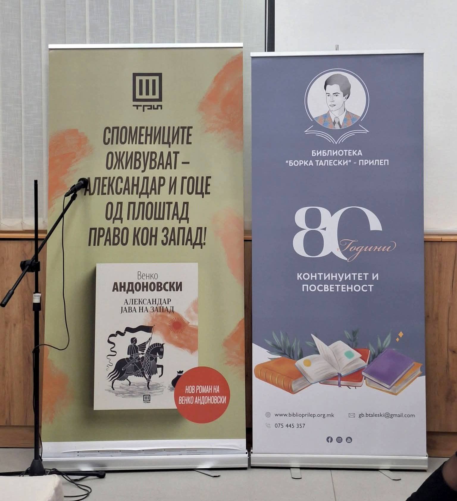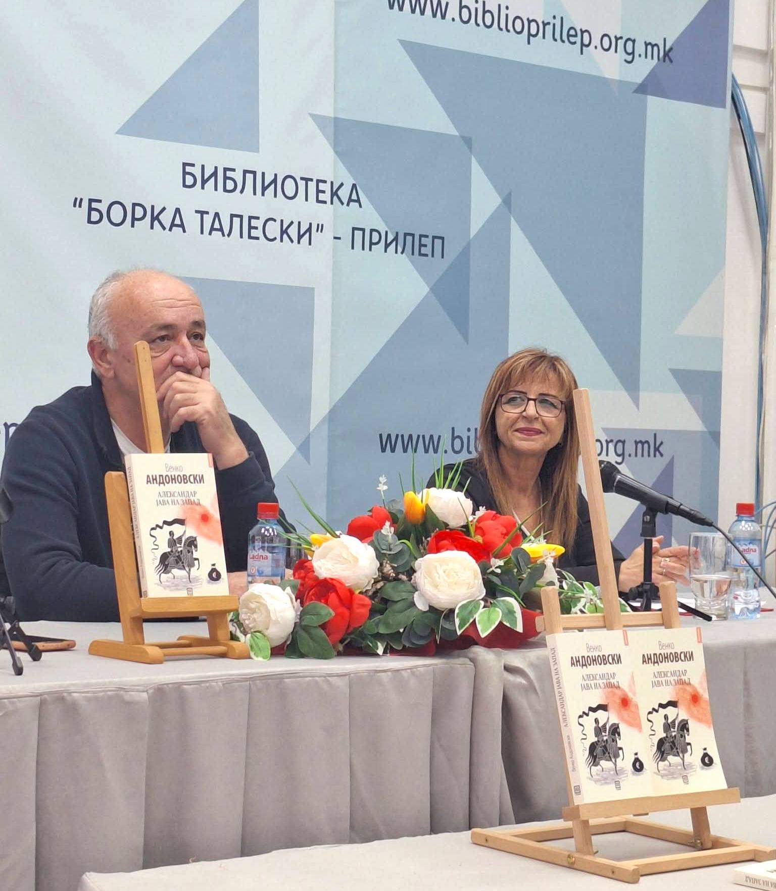 Големата сала на ЈОУ ГРАДСКА БИБЛИОТЕКА „БОРКА ТАЛЕСКИ“ – ПРИЛЕП беше претесна да ги собере сите љубители на пишаниот збор и почитувачи на делото на Венко Андоновски, на синоќешната промоција на неговото најново дело “Александар јава на запад”.