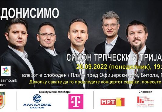“Македонисимо” на Симон Трпчески и пријателите со бесплатен концерт во Битола на платото пред Офицерски
