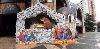 ПРЕКРАСНО! Пред Соборниот храм поставена големата Божиќна пештера (ФОТО)