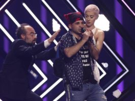 (ВИДЕО) СКАНДАЛ НА ЕВРОВИЗИЈА: Упадна на сцена и им го одзеде микрофонот на претставниците од Велика Британија