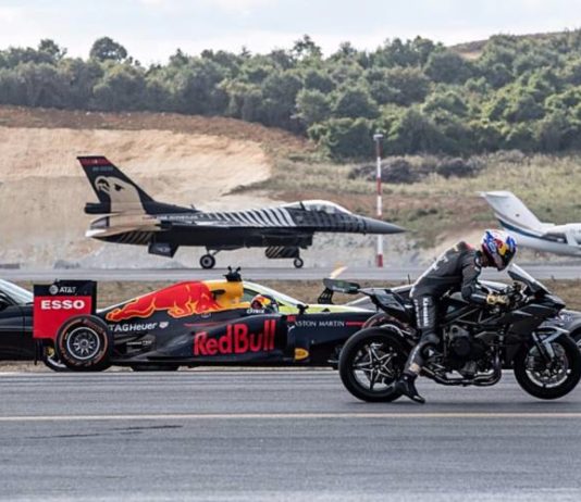 Кога на стаза ќе застанат еден супер мотор, два супер автомобили, Формула 1, два авиони: Еве кој победи (ВИДЕО)