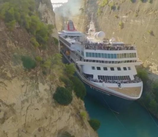 (Видео) Сите мислеа дека ова е невозможно: Погледнете како огромен брод поминува низ Коринтскиот канал
