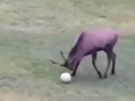 Ова видео за два дена го погледнале 20 милиони луѓе: Елен кој игра фудбал, постигнува гол и прославува