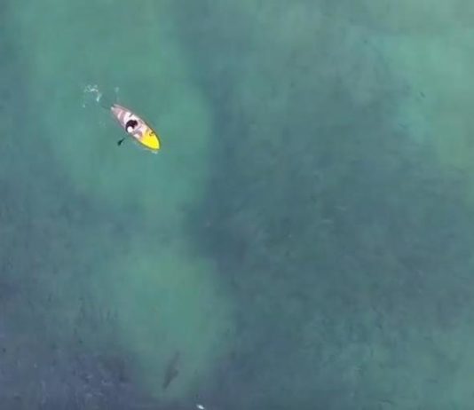 (ВИДЕО) Мирно веслаше покрај брегот, кога под него се појави огромна ајкула