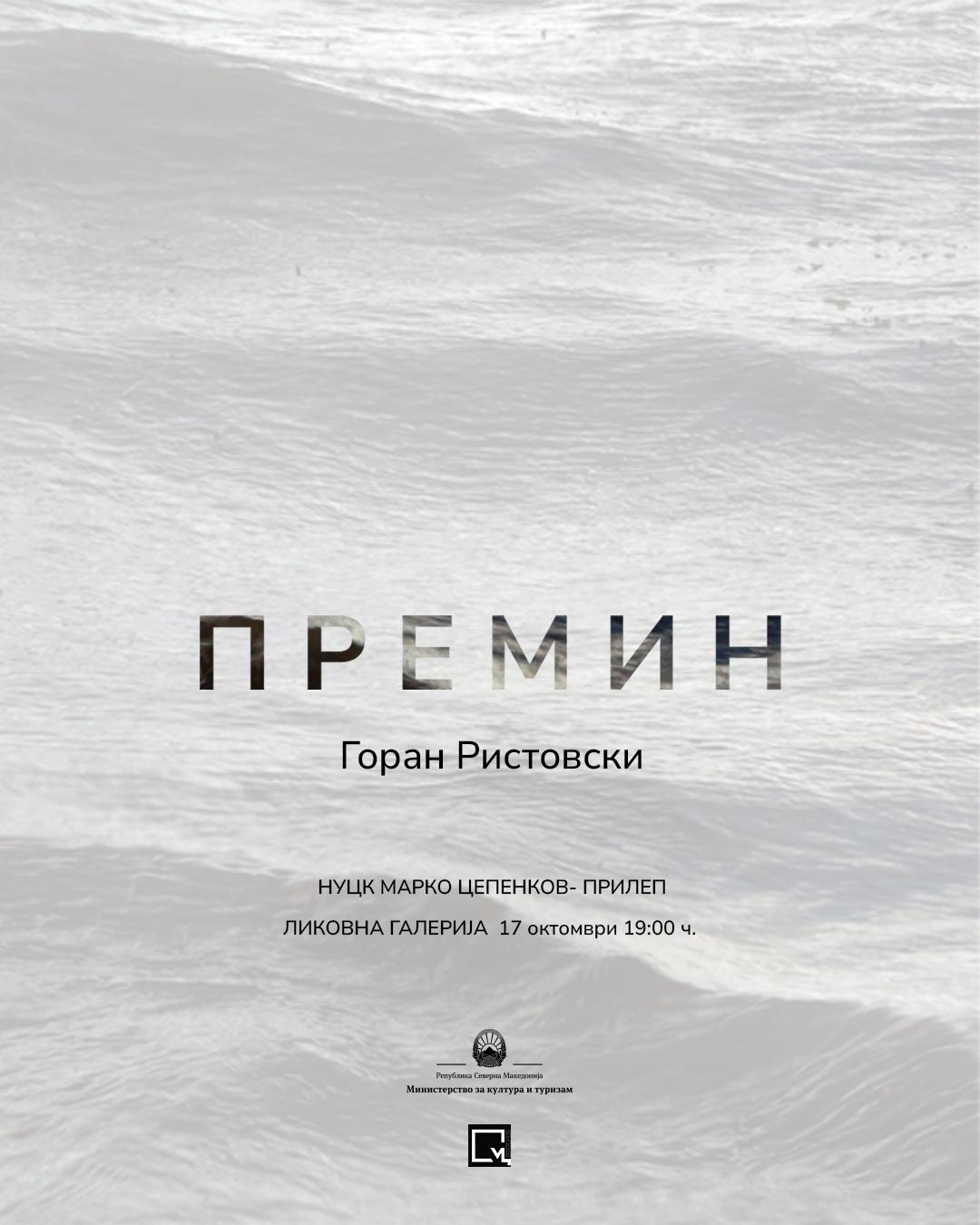 На 17.10.2025/ петок/ од 19.00 часот во Ликовната галерија од ЦК „Марко Цепенков“ ќе биде отворена изложбата „Премин“ од Горан Ристовски, поддржана од Министерството за култура и туризам.