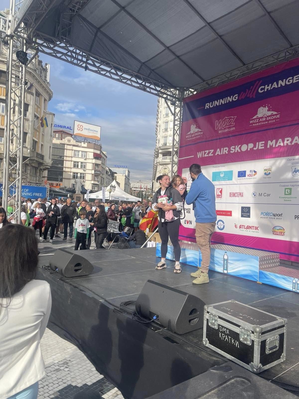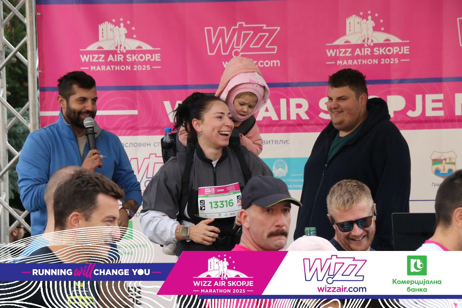 Познатата фитнес инструкторка и бодибилдер Ангела Гелинческа истрча 5км на Скопскиот Wizz Аir маратон заедно со 3-годишната ќеркичка Луна, подвиг кој заслужува секаква пофалба.