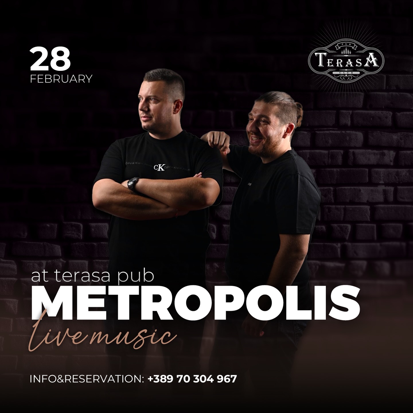 Последниот ден од февруари го заокружуваме со полна енергија и ритам заедно со METROPOLIS BAND. Вечер резервирана за пеење на глас, добра забава и вистинска викенд атмосфера.