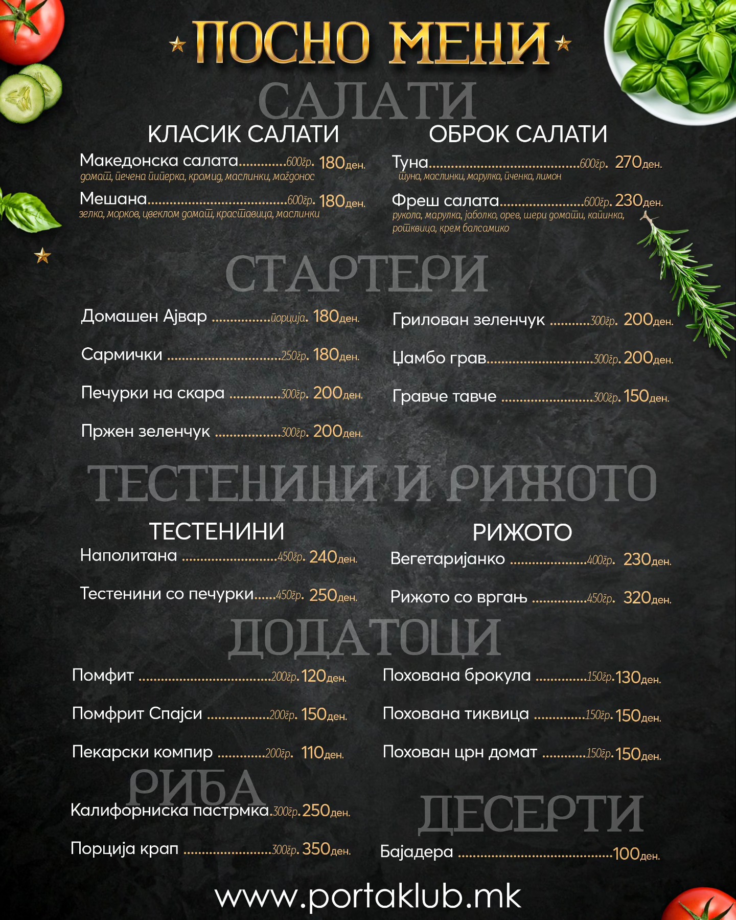 Со цел да излезе во пресрет на сите нивни ценети гости, тимот на ресторанот подготви неодоливо посно мени, кое ќе им се допадне на сите оние кои деновиве до Велигден ги поминуваат во пост.