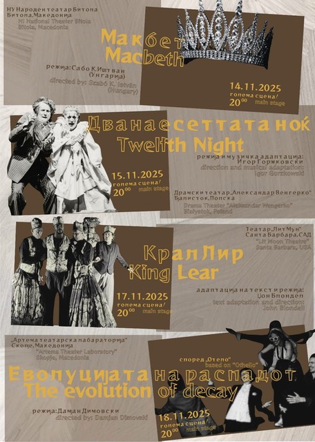 Свеченото отварање на Шекспир фестивалот е на 14. Ноември. Покрај „Магбет“ програмата на фестивалот вклучува претстави од Македонија, Полска, САД, Хрватска / Англија и Бугарија.
