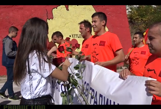 Емотивно видео од Крушево: Крушевчани со рози го послаа патот на маратонците кои од Нова Градишка трчаа во чест на Тоше
