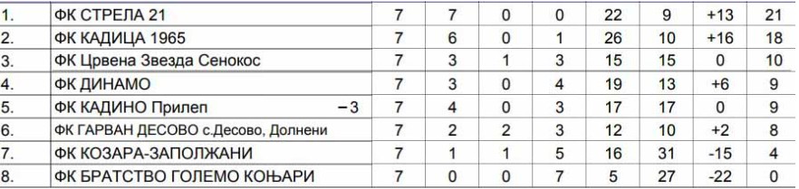 Стрела има 7 победи од 7 одиграни натпревари, 22 постигнати голови и 9 примени. Зад нив е Кадица, на кои единствен пораз им е токму од Стрела.
