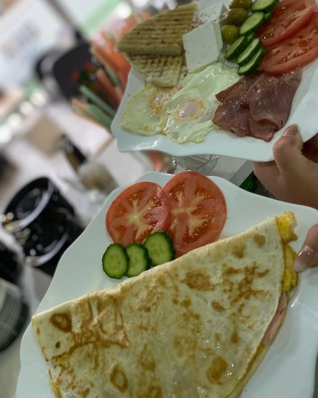 🌯 Омлет во тортиља (шунка, павлака, кашкавал, салата) – 140 ден.